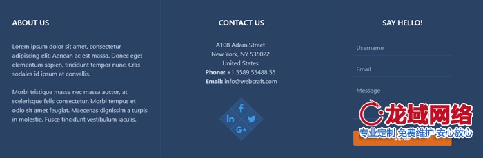 现在,我们看最后的页脚部分。这将包含三列,如下所示: